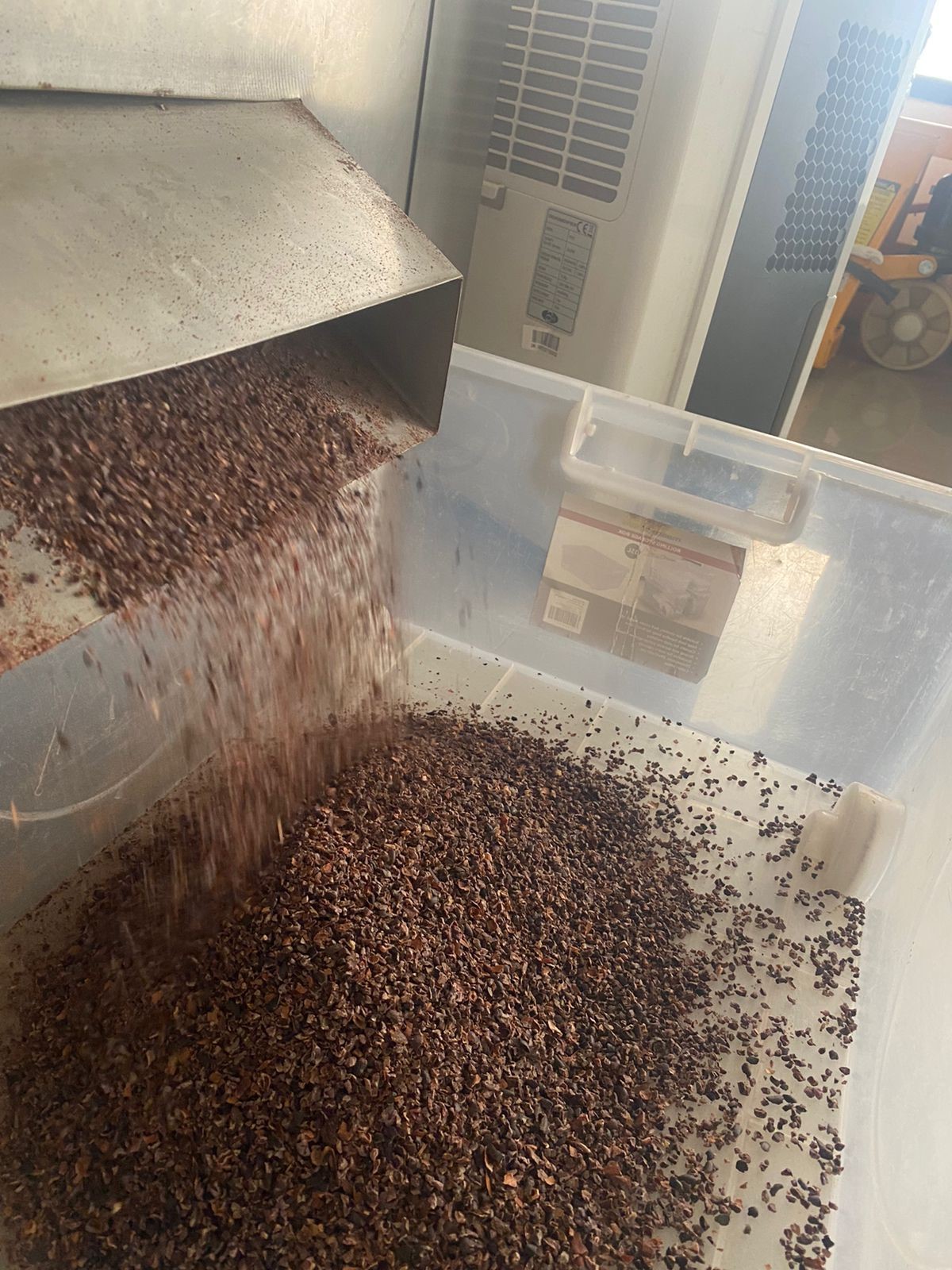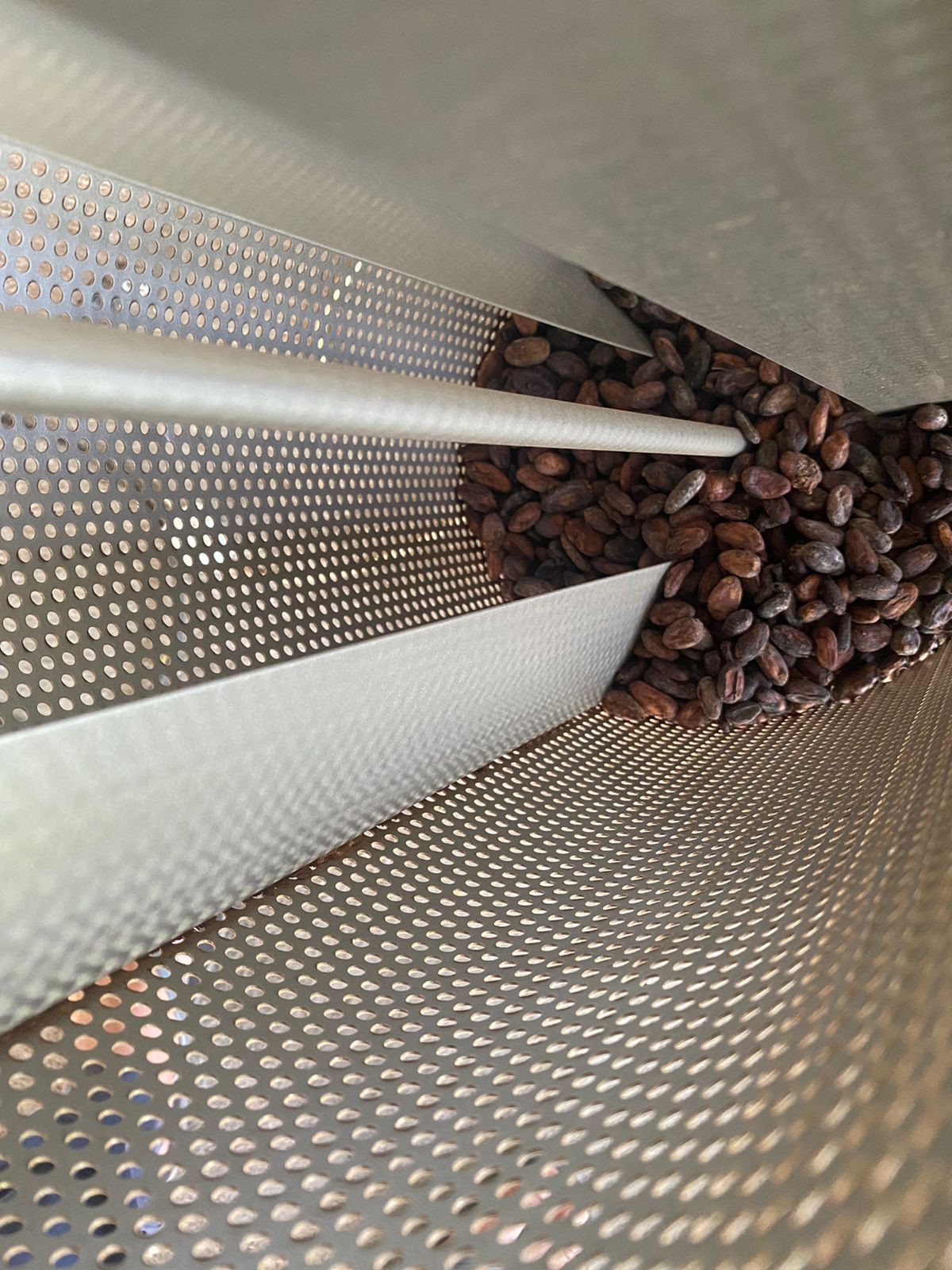 Each cocoa bean is roasted in a different way according to its flavor profile and also according to the intended end product (either nibs or bars). This step is equally important for producing delicious chocolate and is the second most important step after the sorting of the quality beans.